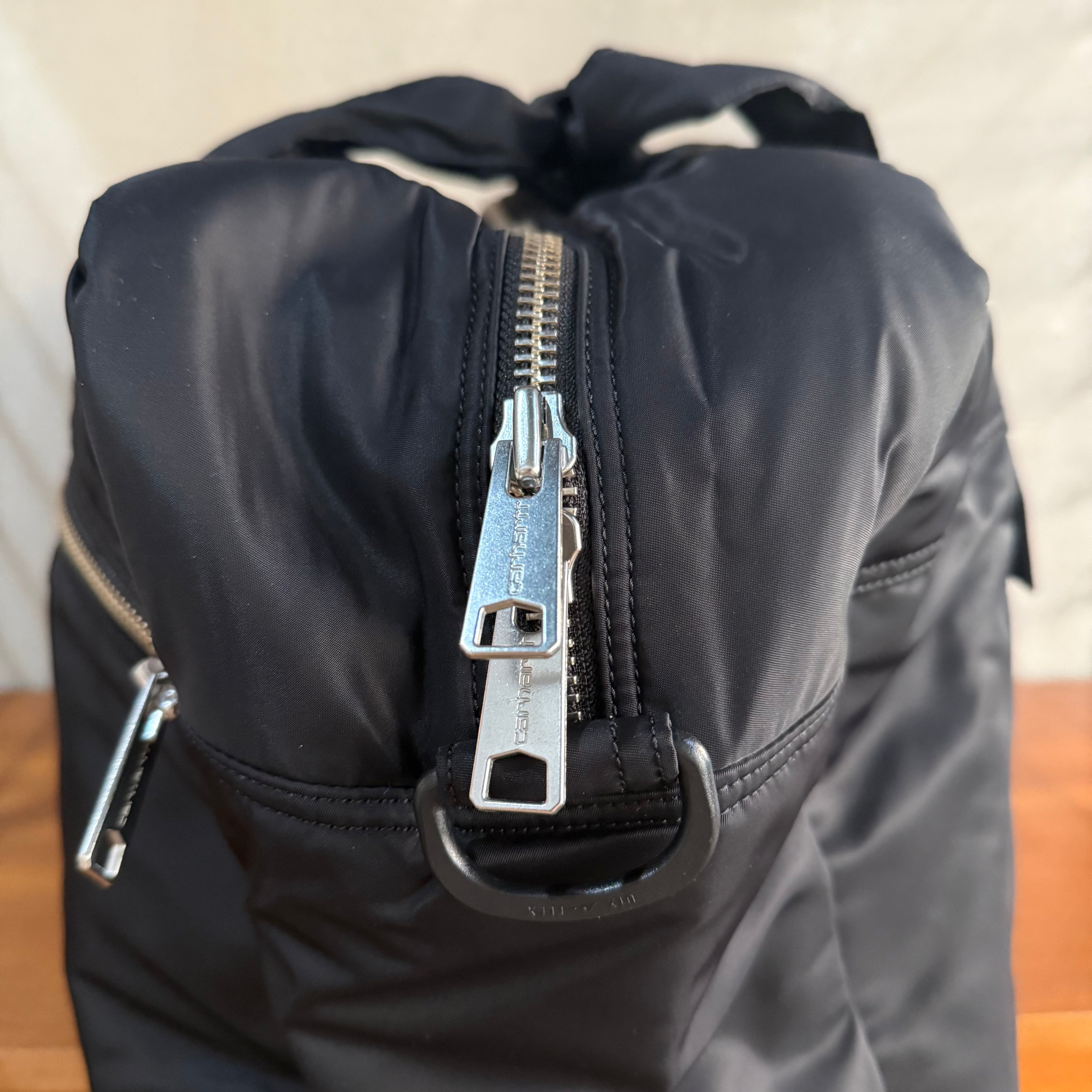 - Main compartment with two-way zip closure