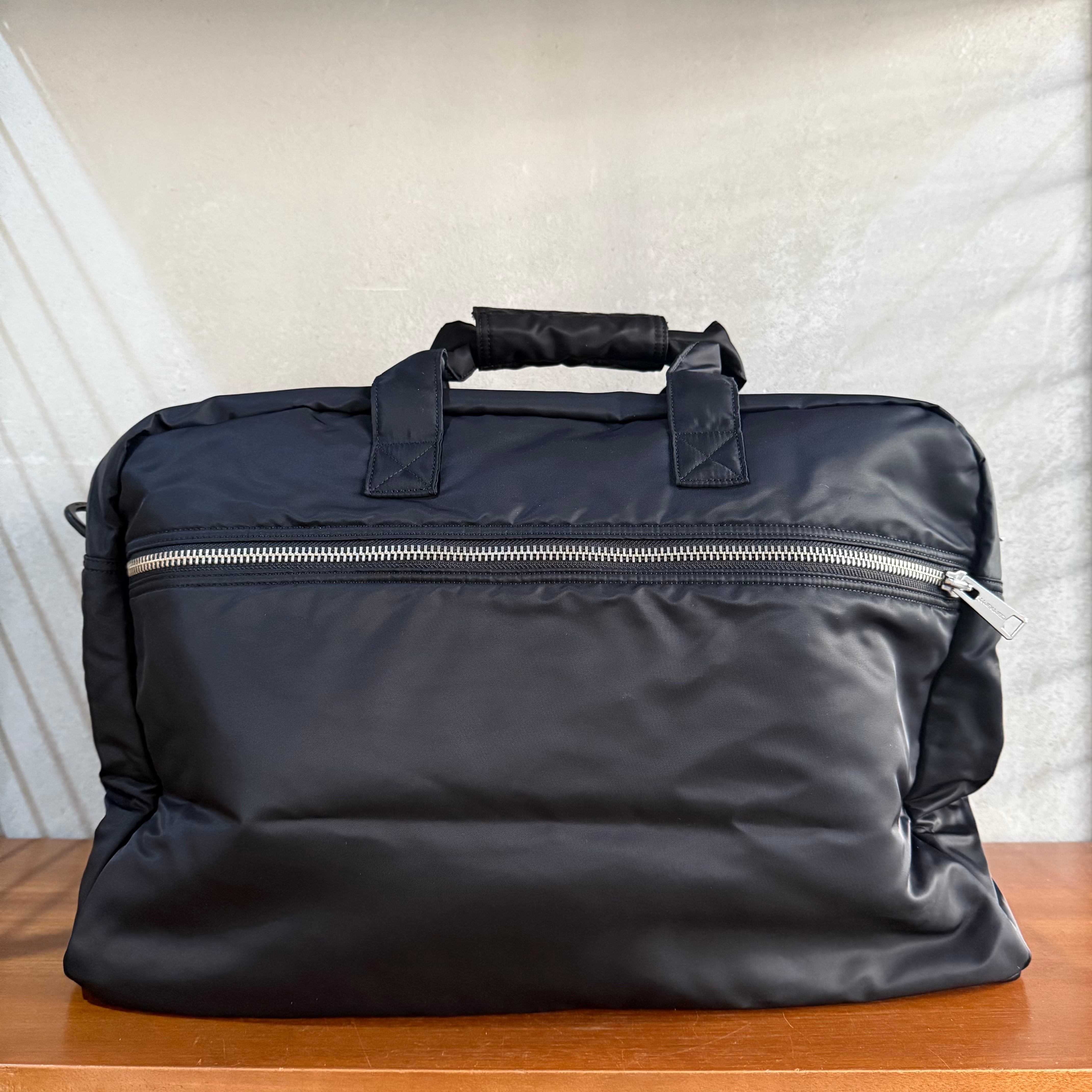 The Otley Weekend Bag is constructed from water-repellent nylon twill and features a padded lining. Inside is a hanging zip pocket at the front and a Velcro® slip pocket at the back. A flap pocket appears on the outside. The item features a removable and adjustable shoulder strap. A tonal Square Label completes the design.
