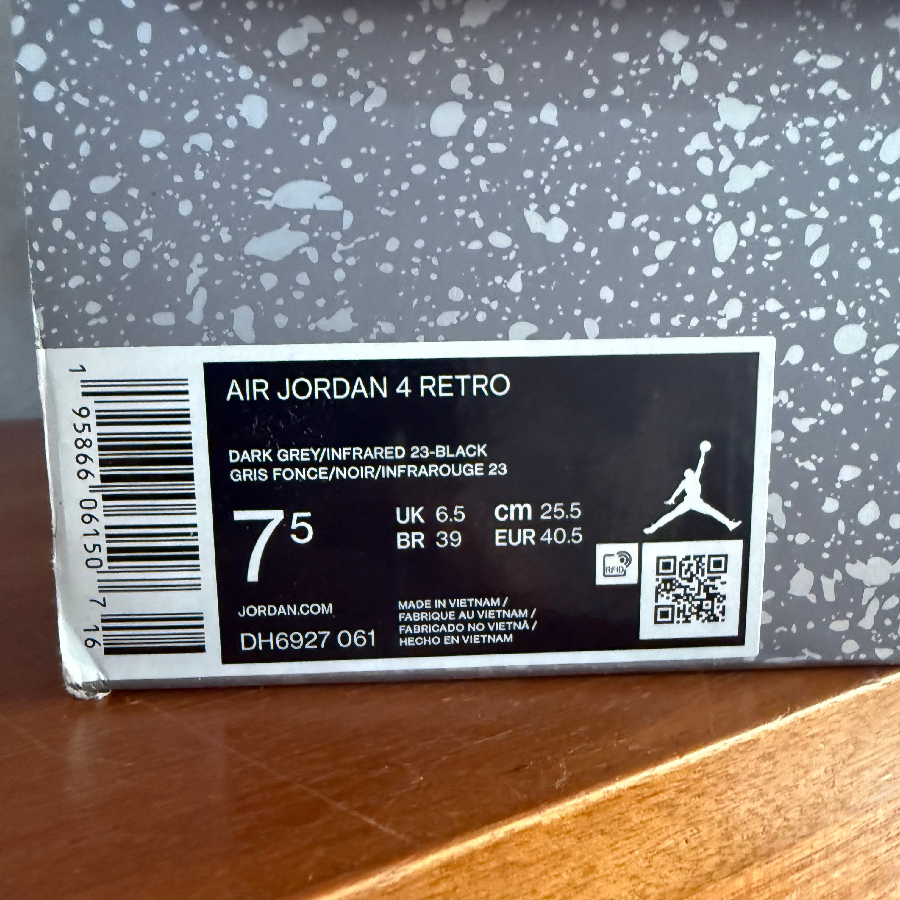 UK 6.5 (US 7.5) Air Jordan 4 Retro INFRARED 2022 code: DH6927-061