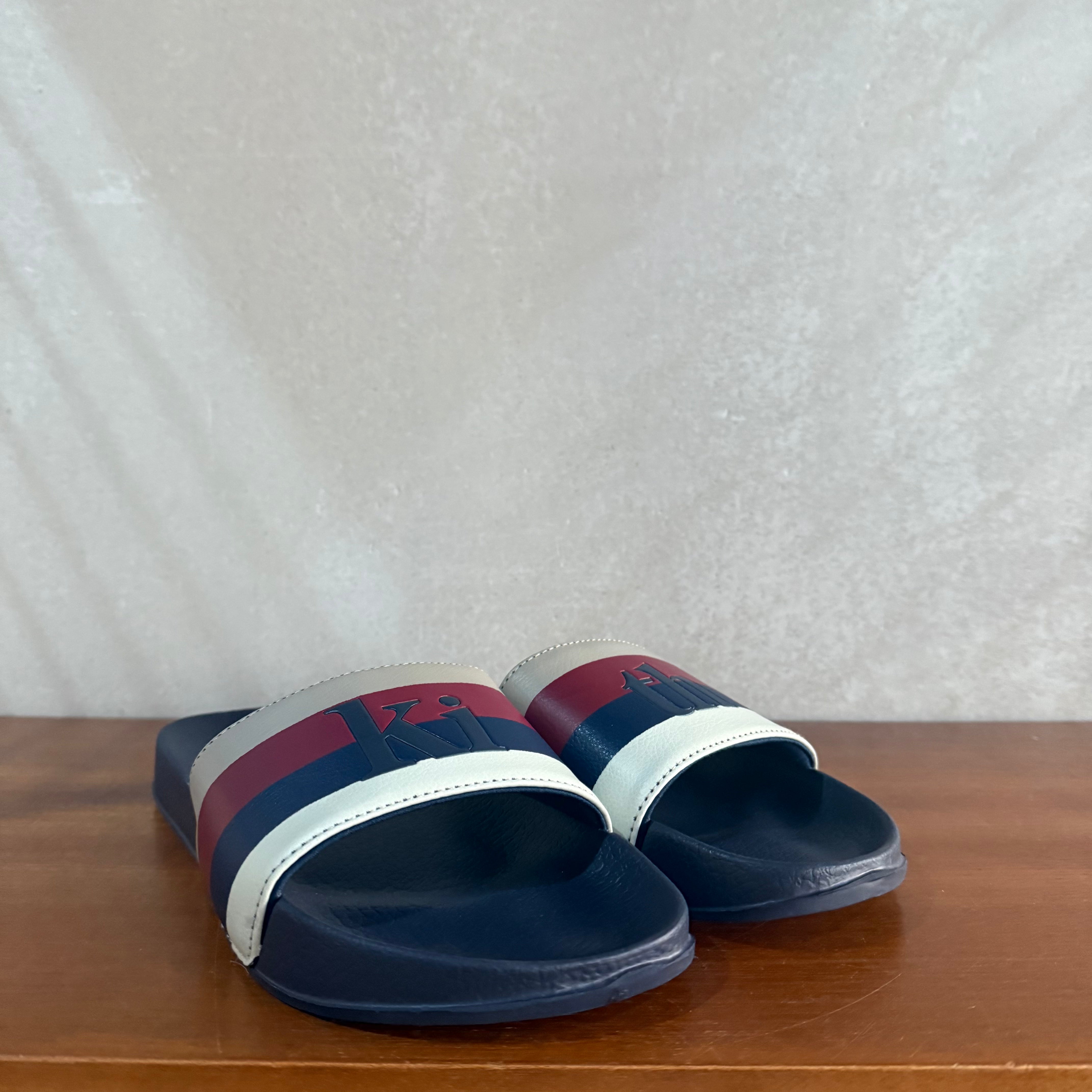 Kith Multi Stripe Serife Logo Slides | Navy Blue Ink | UK 8