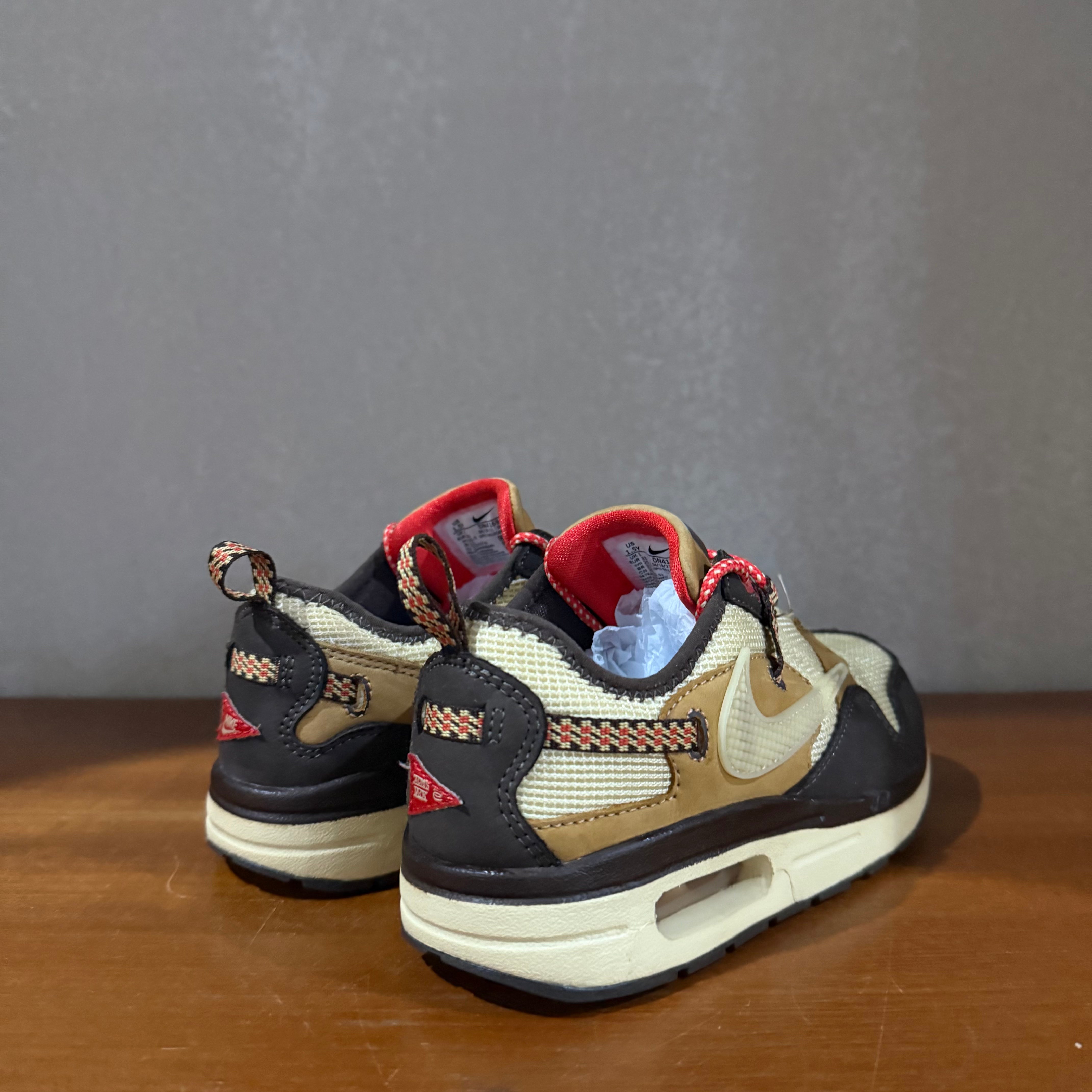 KIDS NIKE AIR MAX 1 Travis Scott Cactus Jack | Baroque Brown | UK 1 / US 1.5Y